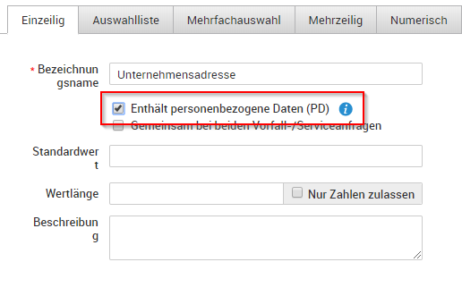1) Markieren Sie Felder mit personenbezogenen Daten in ServiceDesk Plus